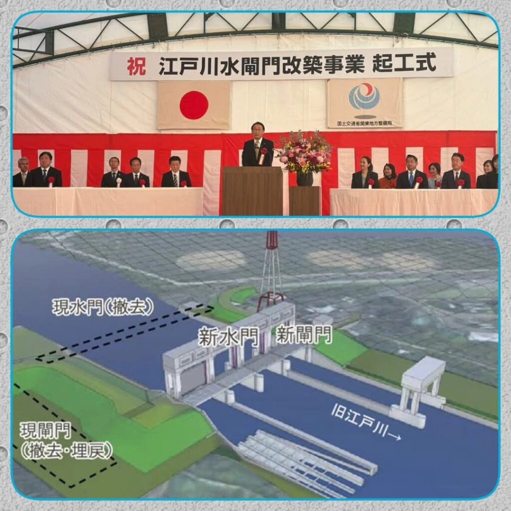 江戸川区と千葉県の間を流れる旧江戸川に跨る水門です。
