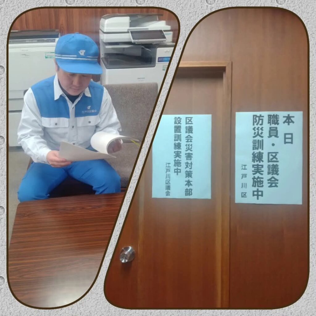 区議会災害対策本部も設置され、各議員の安否や地域の被災状況の確認訓練が行われました。